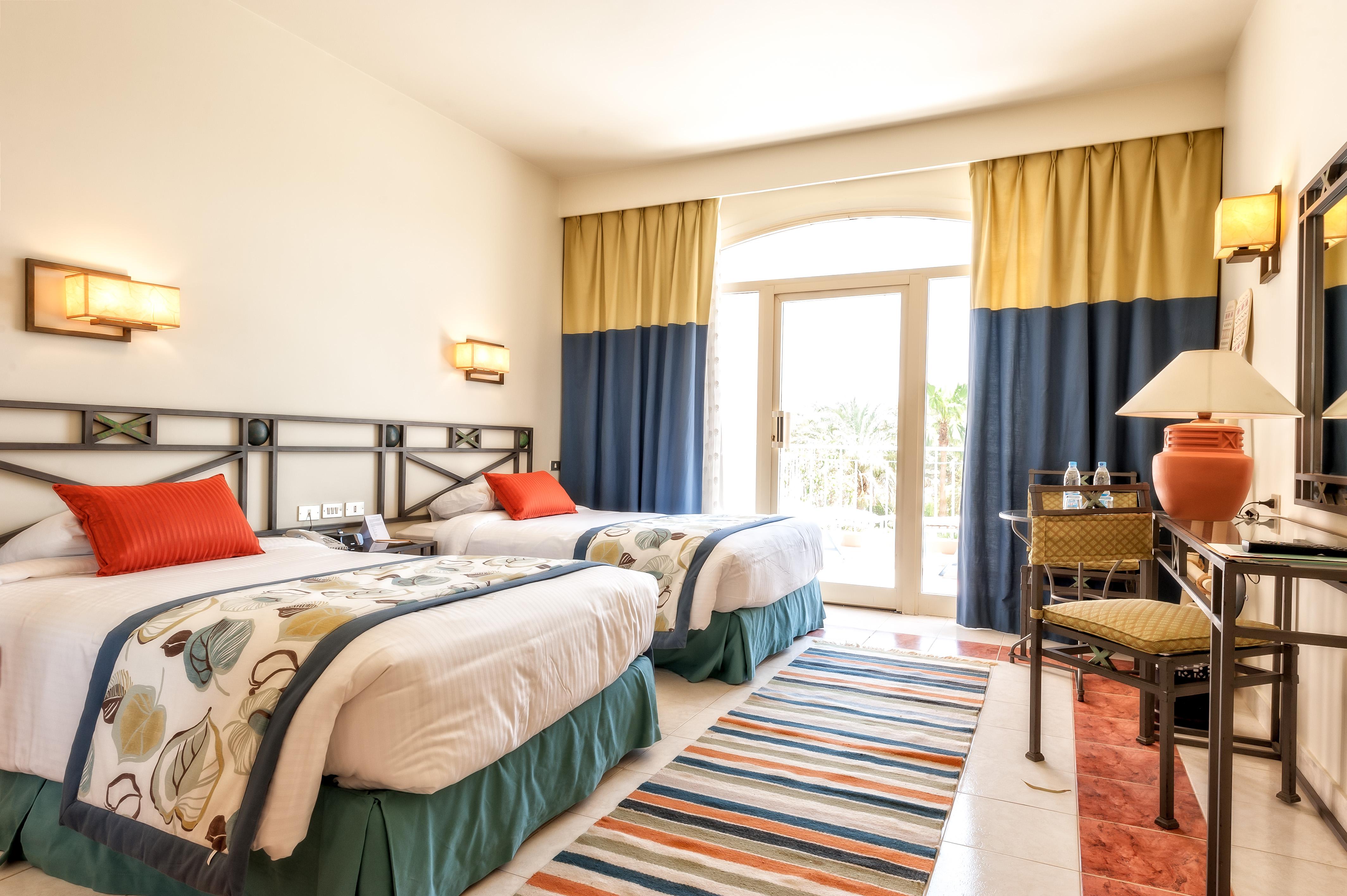 Le Club Paradisio El Gouna se trouve en face du parcours de golf de 18 trous d'El Gouna et donne directement sur une magnifique plage de sable de la mer Rouge. Ce bel hôtel, qui a forgé sa réputation sous le nom de Club Med El Gouna, possède trois piscines, une équipe d’animation et de superbes installations de bien-être. Il offre également une vue à couper le souffle sur la mer cristalline. Les élégantes chambres du Club Paradisio El Gouna sont confortablement meublées et donnent sur la mer, la piscine ou le jardin luxuriant. Elles disposent d’équipements modernes, comme un minibar, un écran plat et la climatisation, ainsi que d’un joli balcon. Prendre ses repas au Club Paradisio, c’est une véritable fête. Rendez-vous au restaurant buffet, qui propose de délicieux mets locaux et internationaux, ou aussi sur la plage, au Morgan’s Beach Bistro. Vous y savourerez de délicieux plats de poisson, le tout avec une vue romantique sur la mer. Bien que l’hôtel offre bon nombre de lieux propices à la détente, les vacanciers sportifs pourront eux aussi s’en donner à cœur joie. L’hôtel propose toutes sortes de sports nautiques, comme la plongée et la voile, mais aussi suffisamment de divertissements au sec. Le centre de bien-être dispose d’un sauna, d’un jacuzzi et de bains turcs, où vous pourrez également profiter d’un soin ou d’un massage relaxant...