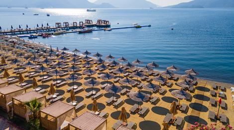 L’Hôtel Caprea est situé directement sur la plage de Marmaris, dans le quartier animé de Siteler. Vous pouvez facilement marcher sur le sable ou vous installer sur un transat avec vue sur la mer. La promenade longe l’hôtel et offre une atmosphère conviviale. Le centre de Marmaris se trouve à environ 4 kilomètres et est facilement accessible en dolmuş. Les chambres sont fraîches et fonctionnelles, décorées dans des tons clairs et équipées de commodités modernes. Vous pouvez choisir entre des chambres simples ou doubles. Certaines chambres disposent d’un balcon ou d’une terrasse, parfois avec vue sur la mer ou sur les montagnes environnantes. Toutes sont équipées de la climatisation, d’un minibar et d’une salle de bain soignée. Autour de la piscine règne une ambiance détendue, avec suffisamment d’espace pour se relaxer. Les plus petits disposent d’un bassin séparé. Sur la plage, transats et parasols sont à votre disposition. Le restaurant, avec terrasse intérieure et extérieure, propose des plats turcs et internationaux. Pour un verre, rendez-vous au bar ou au convivial pool-bar. Envie de sortir? Promenez-vous le long de la côte, visitez l’un des parcs aquatiques à proximité ou prenez le dolmuş pour rejoindre le centre-ville. L’Hôtel Caprea allie le calme en bord de mer à l’animation de Marmaris à courte distance, exactement ce qu’il vous faut pour des vacances au soleil sans souci.