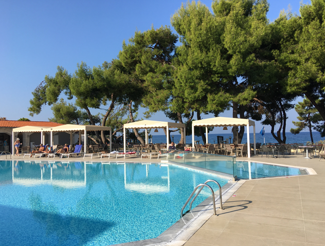 Waar groen, blauw ontmoet; dat is de slogan van het Selections Hotel Portes Beach. En het is meteen overduidelijk waarom: de groene bomen reiken tot aan het schitterende zandstrand met een helderblauwe zee. Op dit adres beleeft zowel jong als oud een heerlijke vakantie! Hoewel Chalkidiki de perfecte plek is om op de mooiste strandjes van de zon te genieten, is het ook mogelijk om lekker actief bezig te zijn in het hotel. Daag je medereizigers bijvoorbeeld eens uit voor een klein tennistoernooitje of leef je uit tijdens een potje beachvolleybal. En het zwembad is heerlijk om verkoeling in te zoeken, maar voor actieveling wordt er ook geregeld een lesje aqua-aerobics in gegeven. Voor kinderen is het in dit hotel een feestje. Zij kunnen lekker met water spetteren op het leuke waterspeelplein met glijbaantjes. Als ze daarna nog genoeg energie over hebben, dan is er een speeltuintje om gezellig te spelen. En er wordt ook nog eens van alles voor hen georganiseerd bij de miniclub. In het restaurant wordt iedere ochtend en avond een uitgebreid buffet bereid, met gerechten uit de Griekse, mediterrane en internationale keuken. Voor de lunch ben je op de juiste plek bij de Griekse taverna aan het strand. Kleine hapjes, vis- en vleesgerechten, groene salades; in alles proef je de heerlijke verse, lokale producten. En last but not least: in de elegante kamers wordt er door de lichte kleuren en de smaakvolle inrichting een huiselijke sfeer gecreëerd.