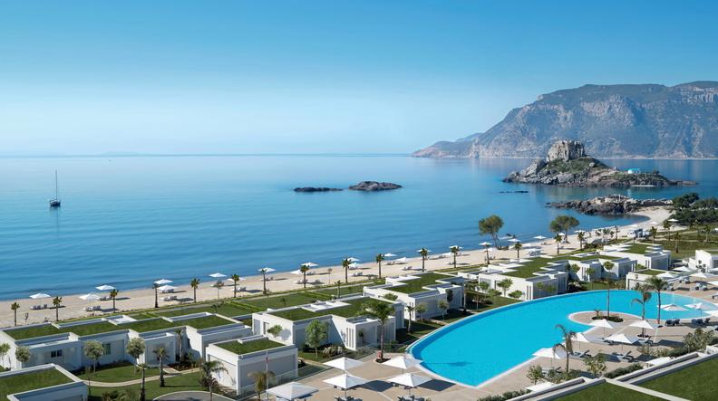 Ikos Aria ligt aan de zonnige zuidwestkust van het eiland Kos en biedt een luxe verblijf direct aan een prachtig zandstrand met Blauwe Vlag. Dit uitgebreide Excellent all inclusive resort combineert kwaliteit met comfort en ligt op een schitterende plek in het zuiden van het mooie eiland Kos. Je geniet hier van ruime faciliteiten, verfijnde restaurants en een heerlijk ontspannen sfeer. De stijl van het resort is strak en elegant, met lichte ruimtes en comfortabele kamers in verschillende categorieën. Alle stijlvolle kamers en suites hebben een balkon of terras en zijn ingericht met hoogwaardige materialen die passen bij het luxe karakter van Ikos. Het resort biedt talloze faciliteiten die je verblijf extra bijzonder maken. Je dineert in meerdere restaurants met menu’s samengesteld door Michelin-sterrenchefs en geniet van een ruime selectie internationale wijnen. Het wellnesscenter biedt exclusieve producten van Anne Sémonin Paris en de 24-uursroomservice maakt je verblijf extra comfortabel. Ook zijn er verschillende zwembaden, sportmogelijkheden en uitgebreide services inbegrepen binnen het luxe all inclusive concept. De ligging is ideaal voor wie rust wil combineren met mooie uitstapjes. Vanaf het resort kijk je uit op het iconische eilandje Kastri en wandel je zo naar de indrukwekkende ruïnes van de St. Stephanos-basiliek. De omgeving nodigt uit om verder te ontdekken, met sfeervolle plaatsjes en prachtige stranden in de buurt.
